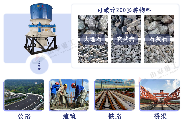應(yīng)用領(lǐng)域:建筑石料破碎和金屬礦石破碎等。